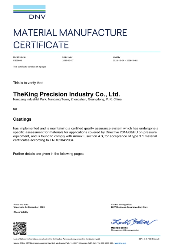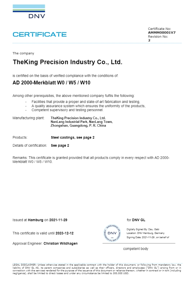 Incorporated TheKing Precision Industry Co., Ltd. with specialized focus on investment casting (lost - wax process) operations.